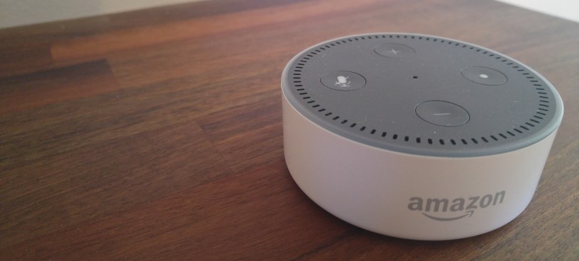 Kokeilumielessä hankin kotiin Amazonin Echo Dot:in. Se on jääkiekon kokoinen Internettiin kytkettävä laite joka ottaa vastaan puhekomentoja. Laite aktivoituu sanomalla ”Alexa”, jonka jälkeen se kuuntelee mitä sanot ja yrittää keksiä mitä pitää tehdä.