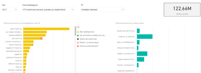 Työskentelen IT-alalla joten minua kiinnostaa keiltä toimijoilta valtio IT-hankintoja tekee ja paljonko. Erityisesti sovelluskehitystä ja konsultointia. Tuumasta toimeen.