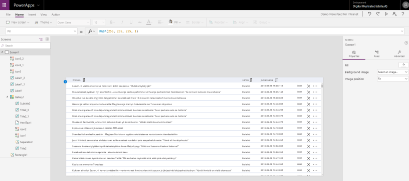 PowerApps pomppaa poikkeavan ulkoasunsa osalta silmille SharePoint-sivulta. Sitä ei ole mitään järkeä (tai toivoa) lähteä viilaamaan niin että se istuisi kaikissa tilanteissa saumattomasti kokonaisuuteen.