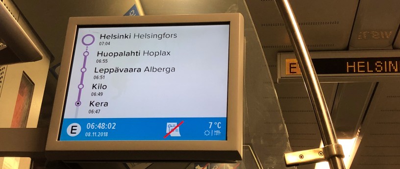 Hups. Reitti on näytöllä väärin päin, joten käännetään se (pääteasema on Helsinki).