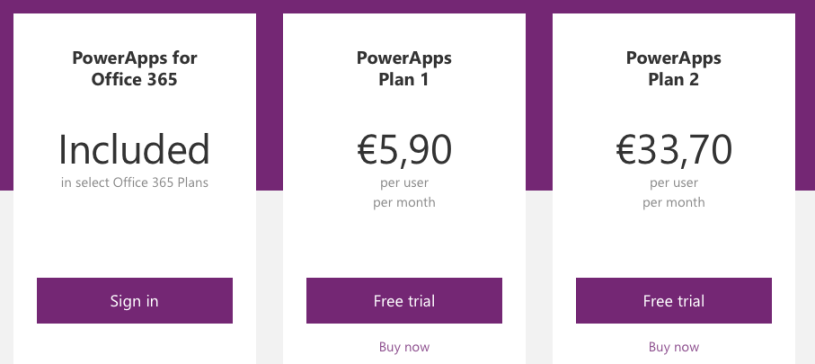 - PowerApps Plan 1 – 5,90€/käyttäjä/kk