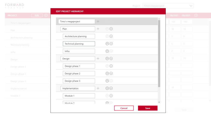 Tänään jatketaan samalla aiheella ja täydennetään tehtyä ratkaisua siten että käyttäjä voi muokata taulukossa hierarkisesti esitettävän projektin rakennetta.