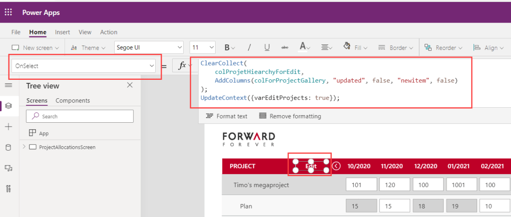 ClearCollect(colTmp, colProjectHiearchyForEdit);