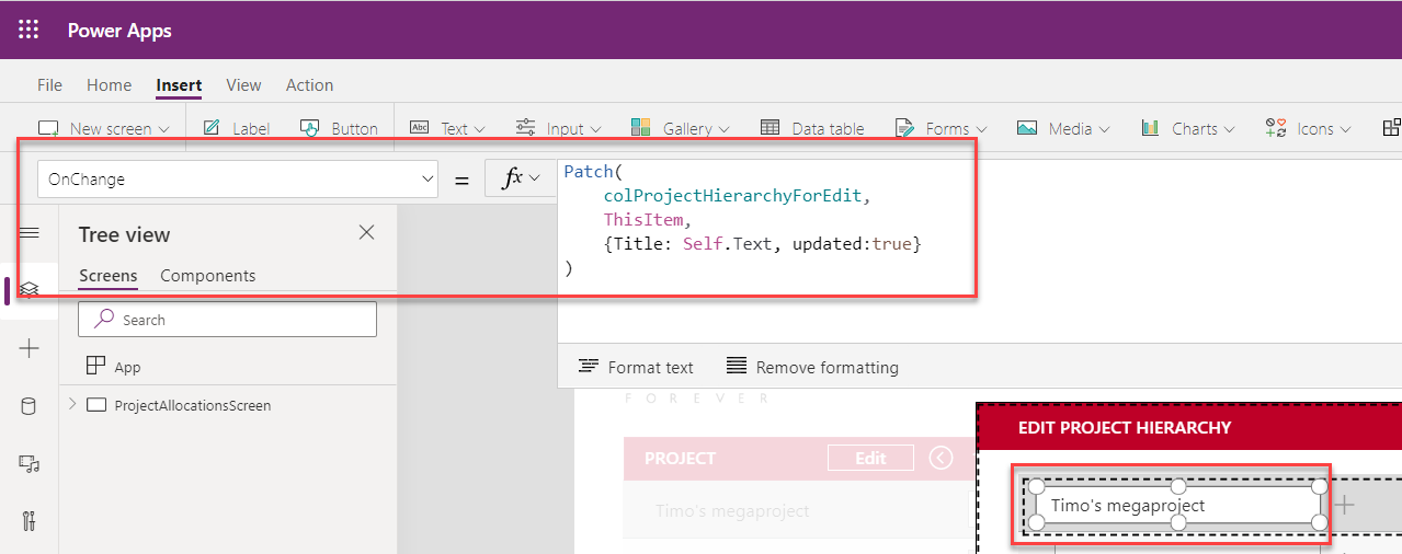 Patch(colProjectHiearchyForEdit,