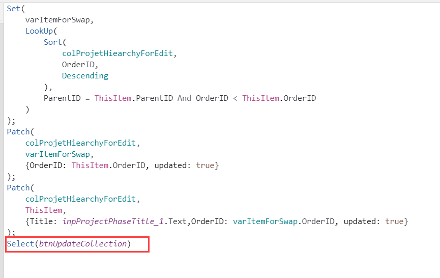 Patch(colProjetHiearchyForEdit,