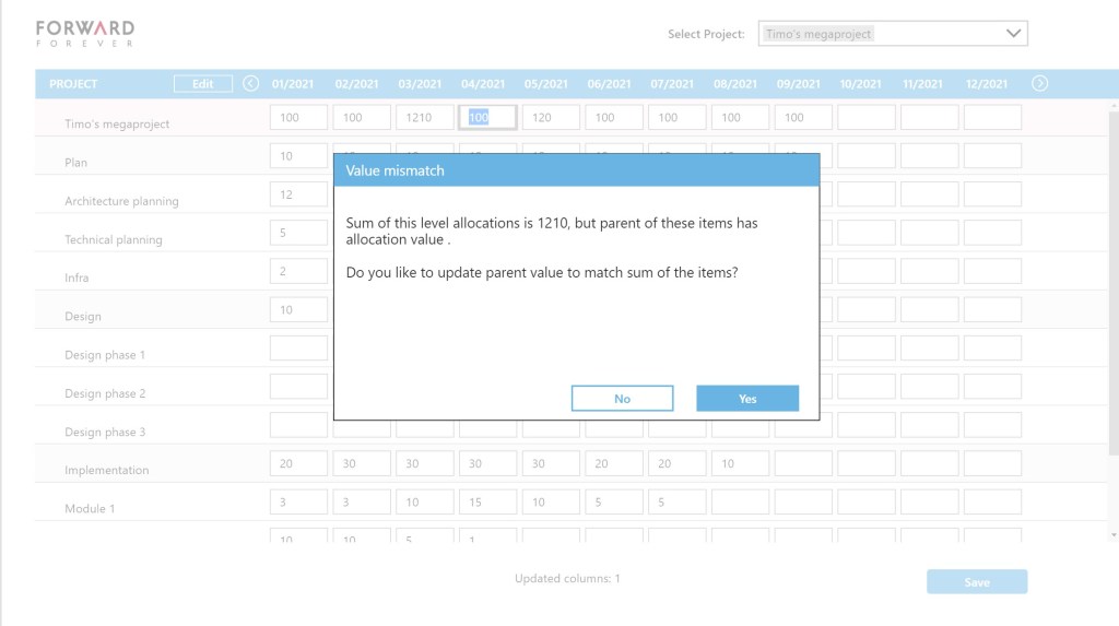 Ja näin meillä on Power Apps koko komeudessaan purettuna työskentely kansiossamme! Kiinnostava osuus on src-kansion alta löytyvät yaml-tiedostot. Alla avattuna ProjectAllocationsScreen-näyttöä vastaava yaml-tiedost. Kaikki näytön kontrollit ja niihin liitetyt kaavat ovat luettavissa selkokielisenä.
