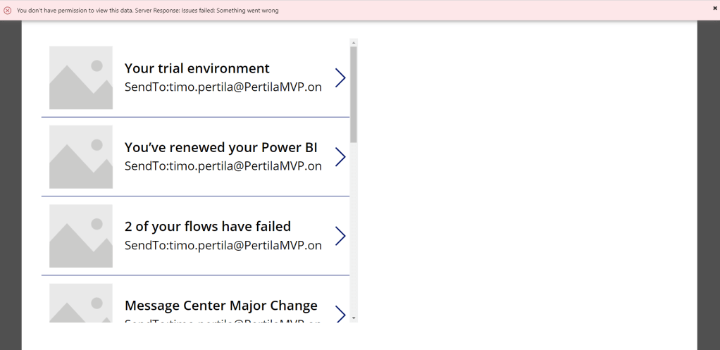 SharePoint-yhteys osoittaa sentään sovelluksen kanssa samassa tenantissa olevaan SharePoint-listaan.