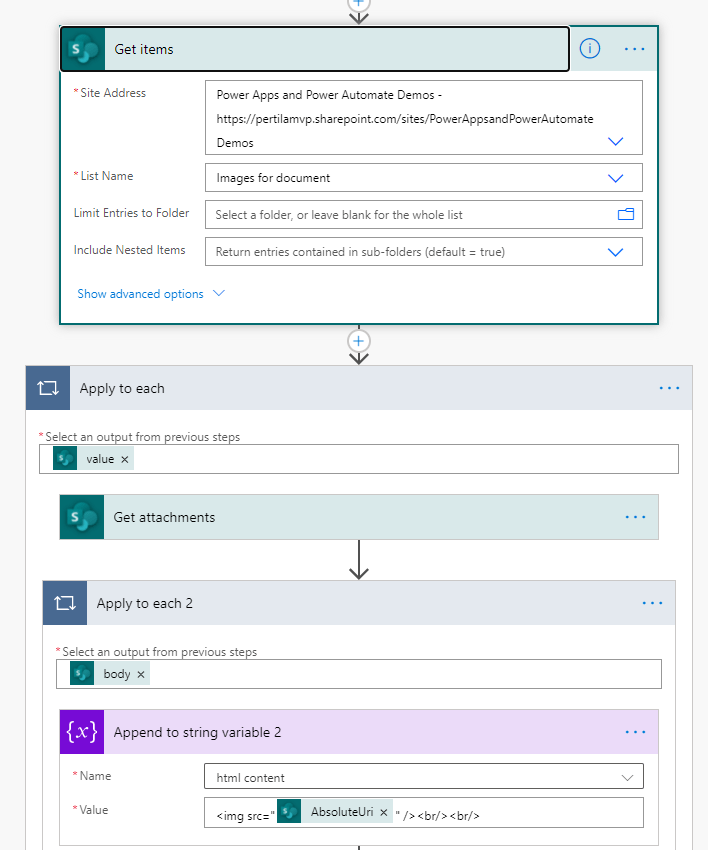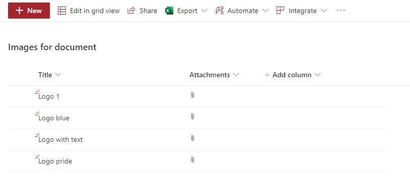Dokumentille liitettävät kuvat haetaan SharePoint-listan riveiltä.