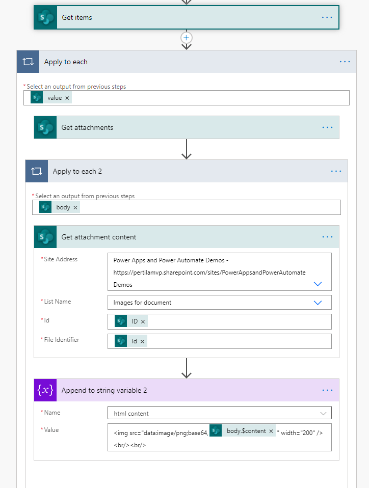 - Haetaan liitetiedoston sisältö (Get attachment content)