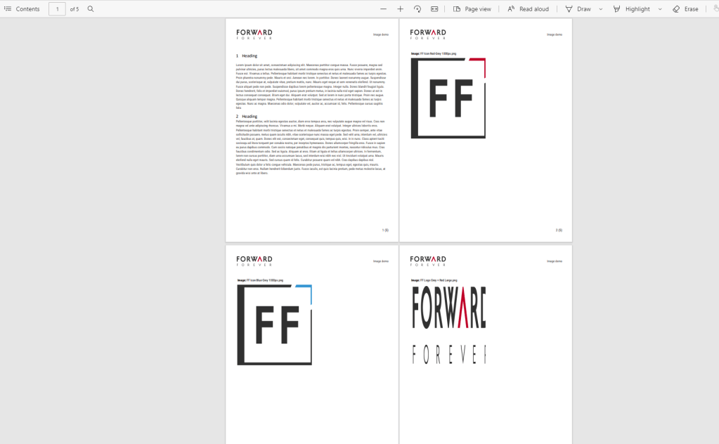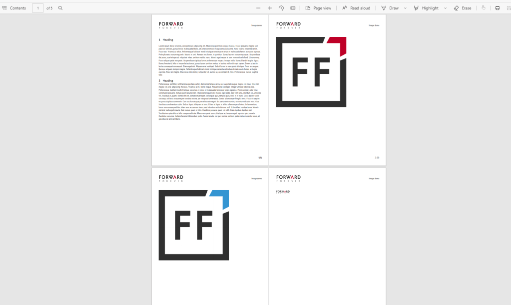 Lisätään tällä kertaa hieman vaikeuskerrointa. Luodaan Flow’lla PDF-muotoinen dokumentti, jonka osana on n kappaletta kuvia. Kyseessä voisi olla esimerkiksi tarkastusraportti kuvineen.