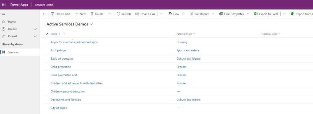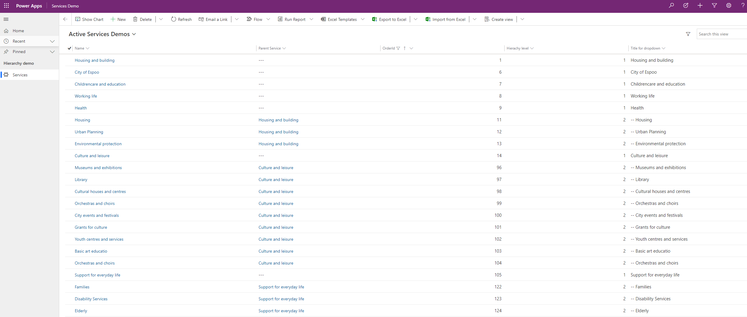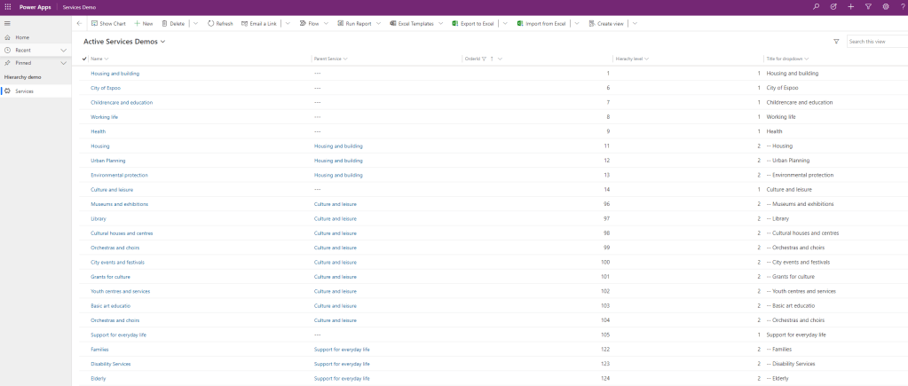 Power Appseja tehdessä tulee usein eteen erilaiset hierarkiat. Organisaatio, tuote, palvelu, jne. Hierakkinen tieto tulee ensinnäkin tallentaa käyttökelpoisessa muodossa. Se on yleensä helppoa. Haasteet tulevat hierarkian hyödyntämisessä varsinaisessa sovelluksessa. Eli miten hierarkia esitetään, jotta siitä voi käyttäjä tehdä valintoja.