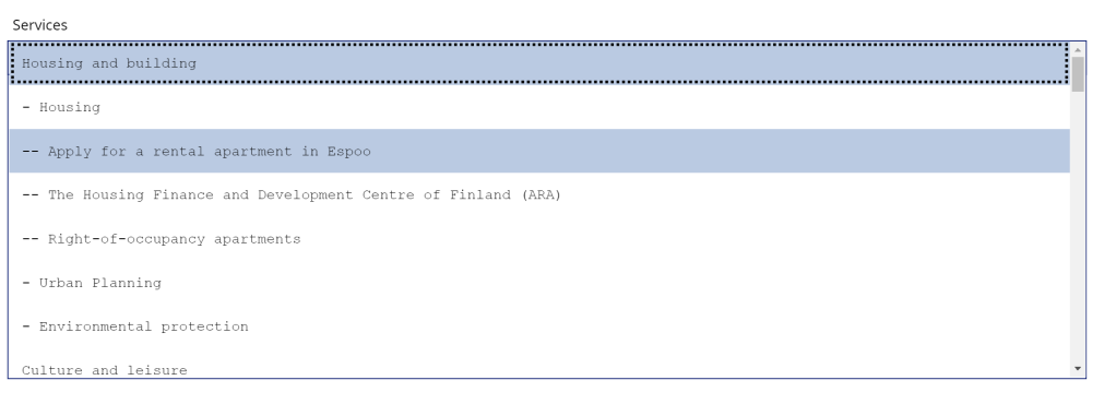 Tällä kertaa käydään läpi hierarkkisen tiedon kanssa työskentelyä. Esimerkkinä käytetään useiden kaupunkien verkkosivuilta löytyvää palveluhakemistoa.