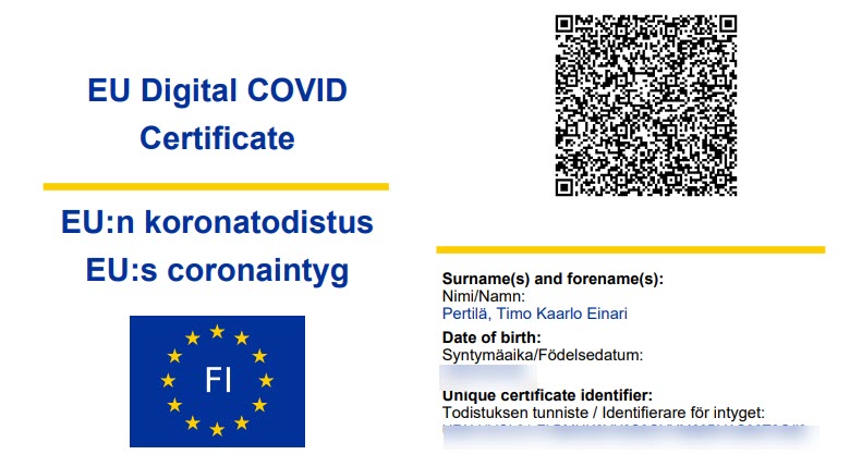 Ratkaisun idea on yksinkertainen. Jokainen voi ladata omakanta-palvelusta EU:n koronatodistuksen. Niitä on kolmenlaisia.