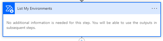 Näin meillä on käytössämme työnkulun tiedot. Lukuunottamatta ajoympäristön nimeä. Mikäli haluamme sisällyttää viestiin myös sen, tulee meidän hakea vielä kaikkien ympäristöjen tiedot (List My Environments).
