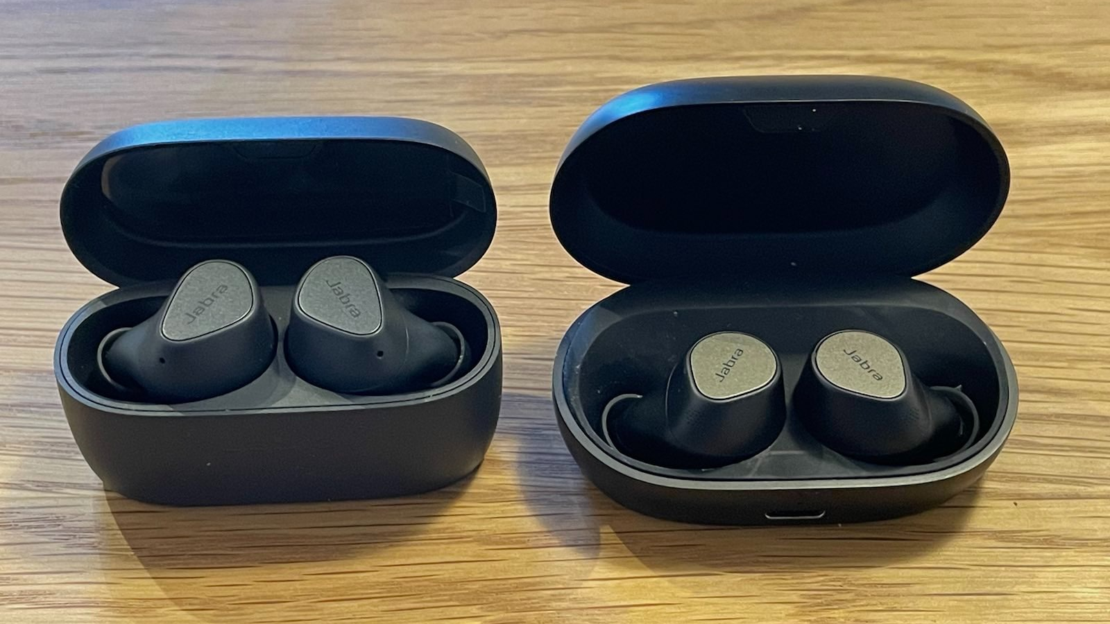 Elite 3 latauskotelo on varustettu USB-C:llä ja yksi lataus riittää 21h käytölle. Kotelo ja akunkesto ovat parammat kuin 65t malliissa. Kotelon kansi on jämäkämmän tuntuinen ja napit ovat kiinni magneeteilla. Mielestäni kotelo (kuvassa vasemmalla) on helpompi avata kuin lippulaivan (Elite 7 Pro, kuvassa oikealla) kotelo.
