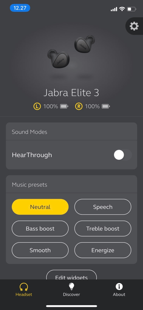 Elite 3 edullinen hinta näkyy parhaiten Jabran mobiilisovelluksesta, jolla kuulokkeiden asetuksia voi muokata.
