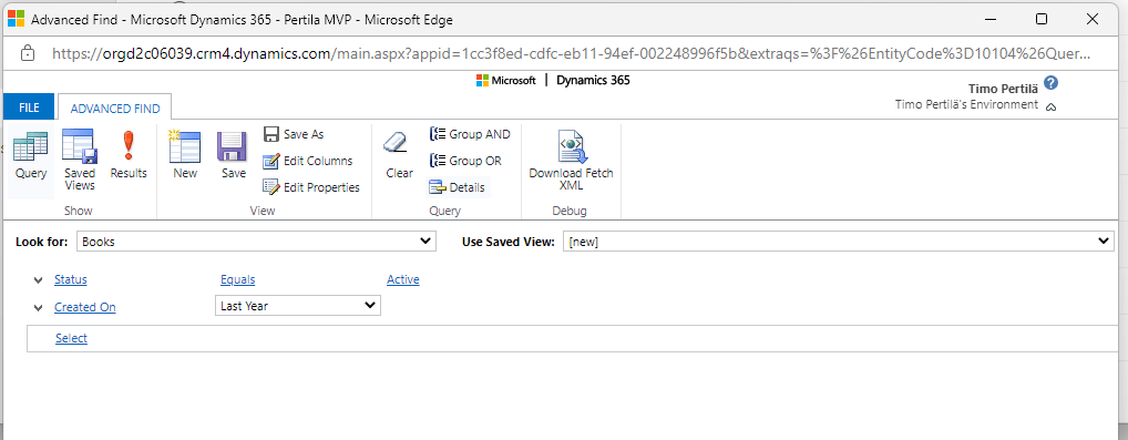 Juuri kun FetchXML alkaa tulemaan suosituksi Power Platform -tekijöiden parissa, Microsoft menee piilottamaan natiivin Advanced Find -toiminnon, josta sen on helposti saanut ulos. 2022 Release Wave 1 ja ”modern advanced find” kun poistaa AF-painikkeen näkyviltä: https://jukkaniiranen.com/2022/02/modern-advanced-find-test-drive/
