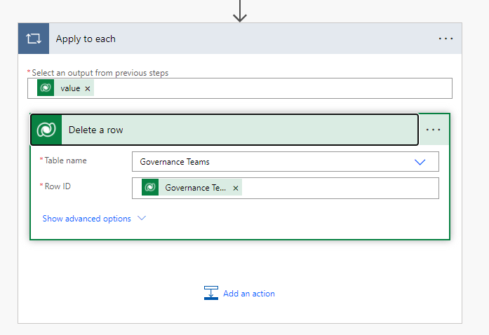 Nyt uusien rivien lisääminen ja olemassaolevien päivittäminen on todella suoraviivaista. Miten saisimme helpoiten poistettua Dataversestä ne tiimit, joita ei enää ole?