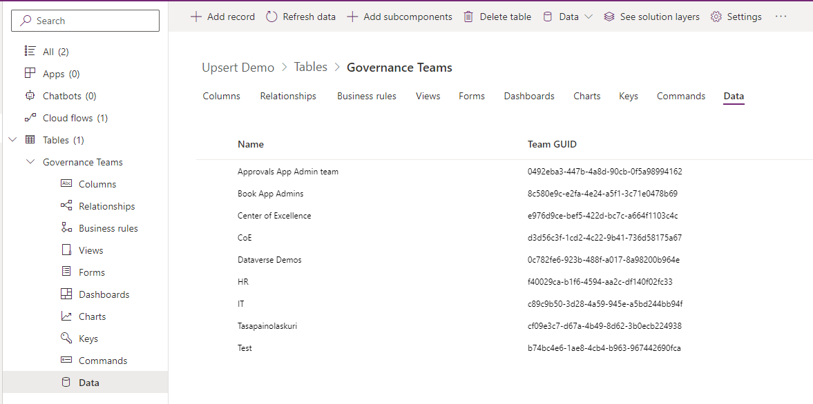 Eli meidän ei tarvitse ylläpitää Dataversessä Team GUID -kenttää.