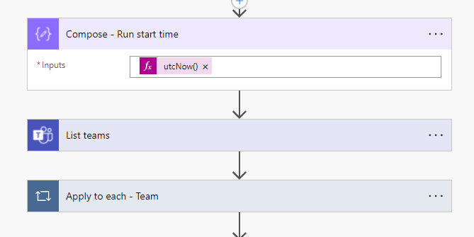 - Käydään tiimit yksi kerrallaan läpi (Apply for each)
