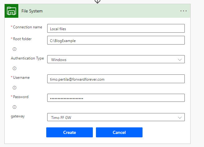 Vaikka tekeminen on siirtynyt vahvasti pilveen, tulee ajoittain eteen tarve käsitellä paikallisia tiedostoja. Tämä ei suinkaan edellytä RPA-ratkaisua, vaan yhdyskäytävä ja flow auttavat eteenpäin.