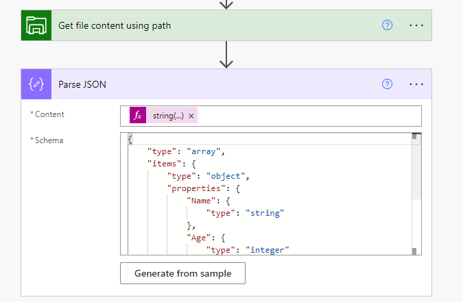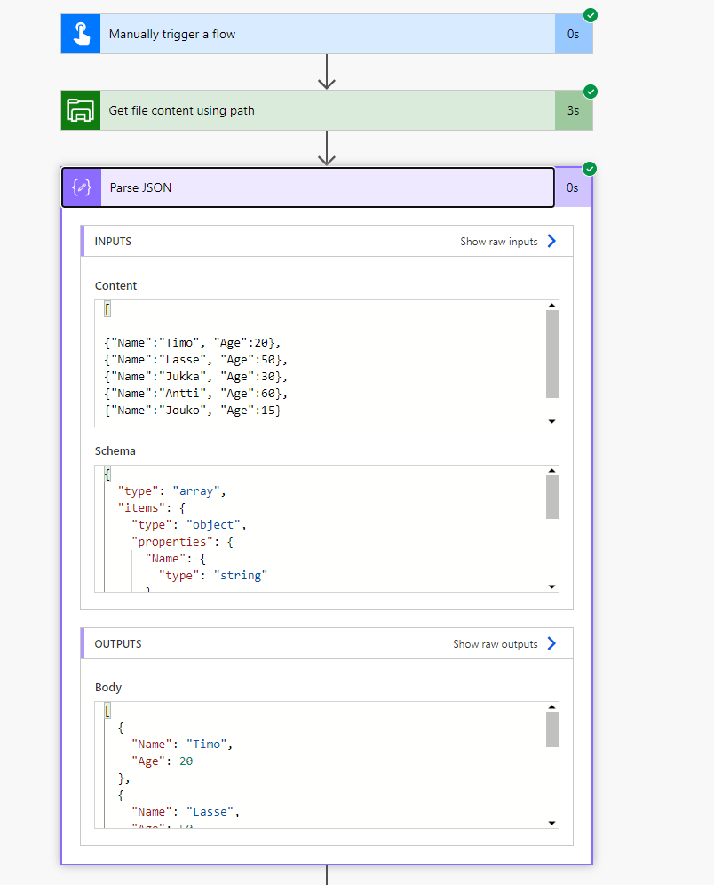 Jonka jälkeen sitä voi käyttää Parse JSON -toiminnon syötteenä.
