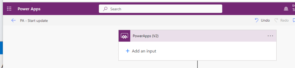 Tämän jälkeen tehdään yksinkertainen Power Apps, jolla flow käynnistetään.