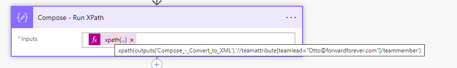 xpath(outputs('Compose_-_Convert_to_XML'),'//teamattribute[teamlead="Otto@forwardforever.com"]/teammember')