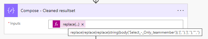 replace(replace(replace(string(body('Select_-_Only_teammember')),'[',''),']',''),'"','')