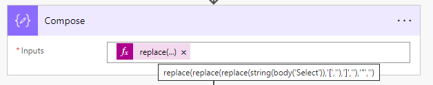 replace(replace(replace(string(body('Select')),'[',''),']',''),'"','')