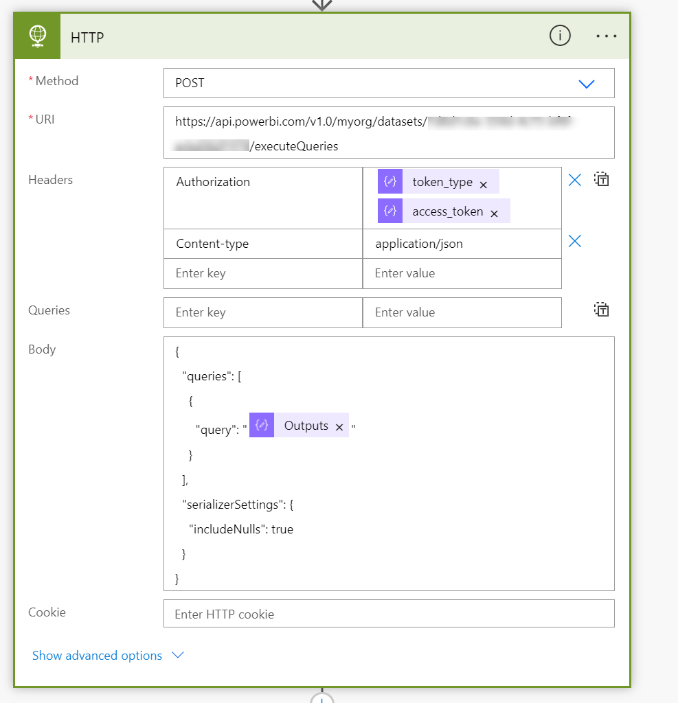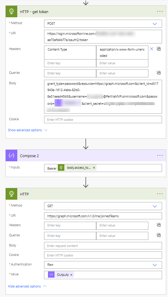Ensimmäinen vaihtoehto on käyttää HTTP-toimintoa ja hyödyntää siinä ns. Service Principalia. Emme siis tunnistaudu käyttäjänä, vaan Azure AD:hen rekisteröityneenä sovelluksena.