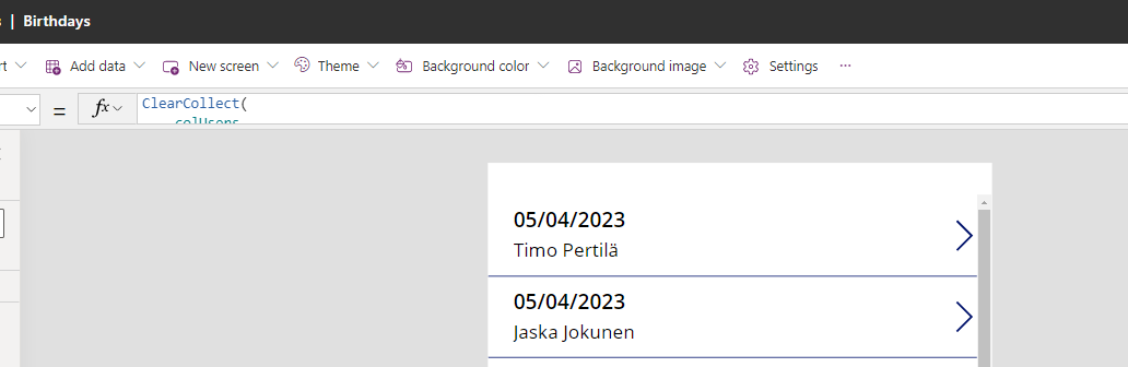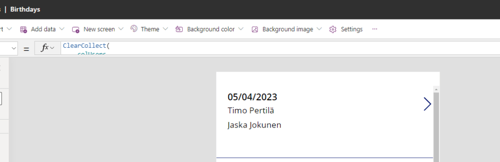 Tämä tulee vaikuttamaan ikävästi Power Appsimme suorituskykyyn. Jatketaan silti ja murehditaan mahdollista hitautta myöhemmin.
