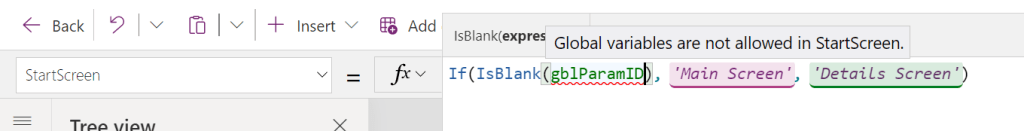 StartScreen: If(IsBlank(ParamID), 'Main Screen', 'Details Screen')