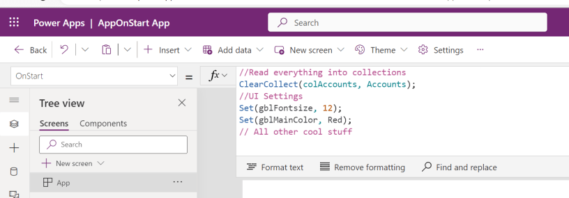 Kannustan kokeileman Power Appsin tekoa kokonaan ilman tuttua ja turvallista App OnStart:ia Se tulee nimittäin ennemmin tai myöhemmin katoamaan kokonaan.