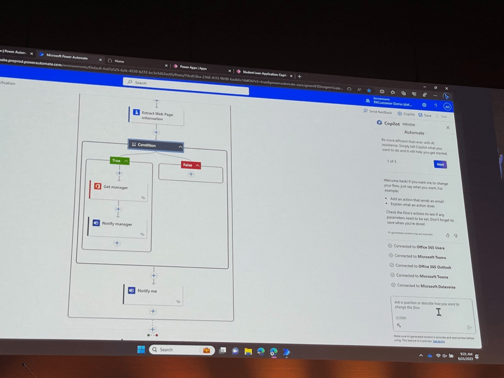 Ketään tuskin yllättää tapahtuman avauspuheenvuoron keskittyminen Power Platformin nykyisiin ja tuleviin AI kyvykkyyksiin. Varsinkin uusi flow-editori co-pilotilla höystettynä näytti lupaavalta.