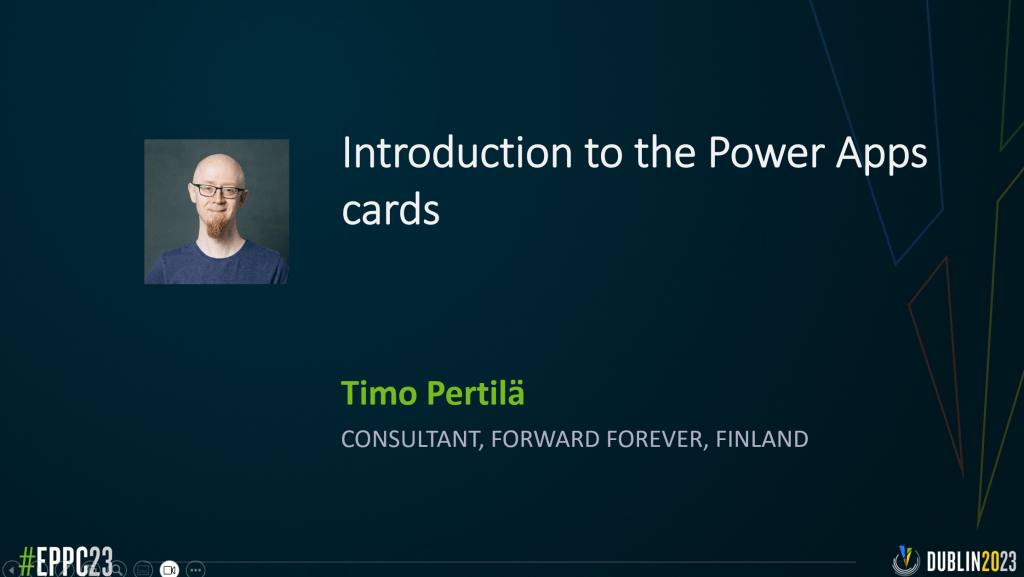 Oma esitykseni käsitteli Power Apps kortteja (cards). Yleistason esitys muutamalla demolla höystettynä. Tavoitteena avata mitä nämä kortit oikeasti ovat, mihin niitä voi käyttää ja miten niitä rakennetaan.