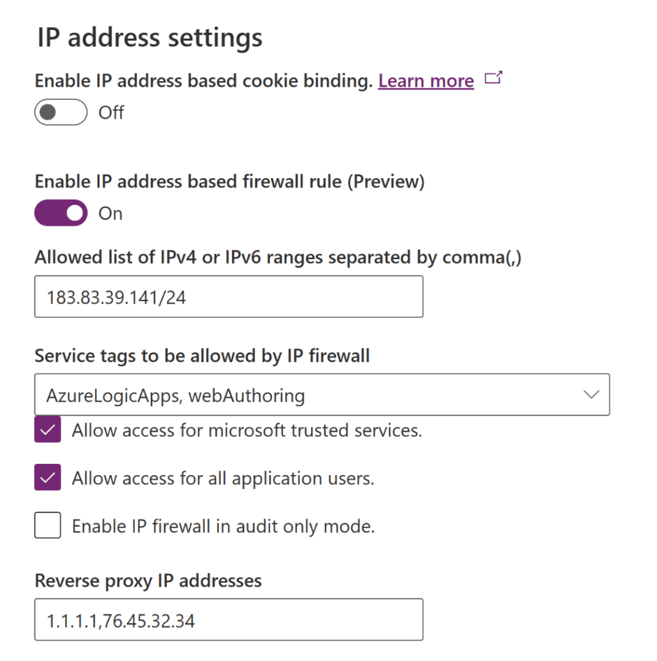 Lisää: https://learn.microsoft.com/en-us/power-platform/admin/ip-firewall