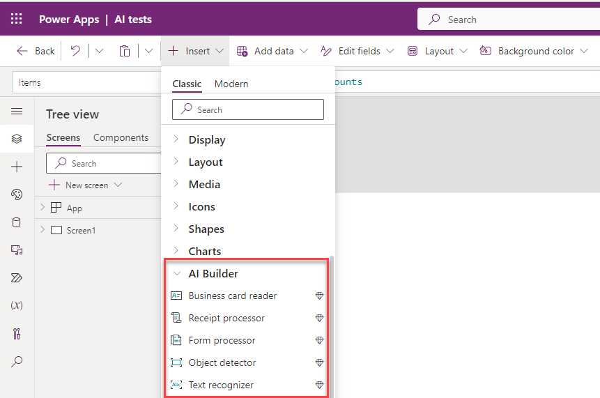 Canvas Power Apps ja AI
