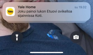 Halutessaan siitä saa ilmoituksen myös puhelimeen. Tämä edellyttää wi-fi sillan kytkemistä lukkoon.