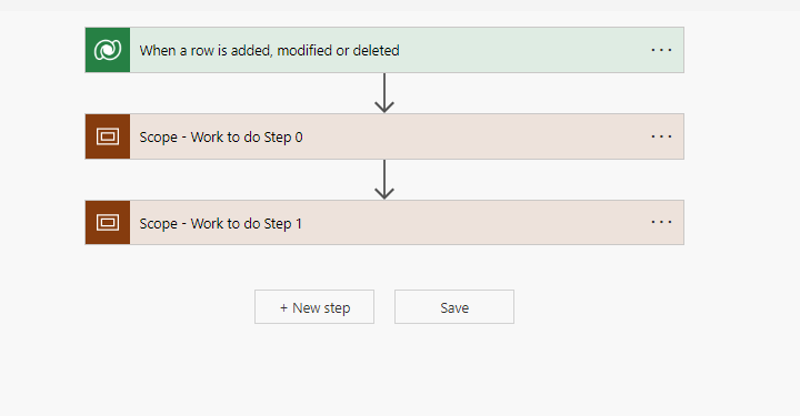 Lisätään työnkulkuun uusi toiminto (Step 0).