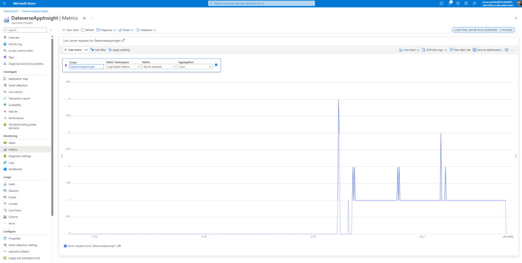 Application Insights on Azuren palvelu web-sovellusten monitorointiin, vianselvitykseen ja käytön seurantaan. Mikäli kyseessä on uusi tuttavuus, voit lukea aluksi aiemmat kirjoitukseni jotka käsittelevät sen hyödyntämistä Power Appsien valvonnassa.