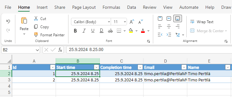 Hieman pitää vain pyöristää, sillä 2024-09-25T08:25:00.0000000 vastaava sarjanumero on 45560.3506944444.