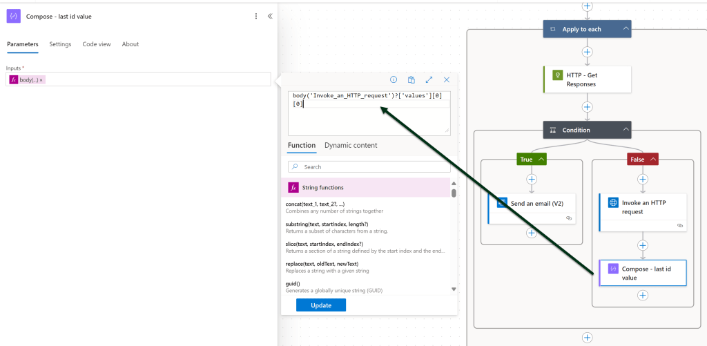 length(body('HTTP_-_Get_Responses')?['value']) is greater than 0 AND