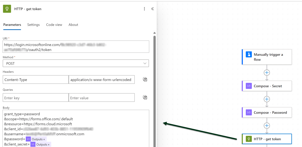 MS Formsin API:a ei voi käyttää Power Automaten vakioyhdistimillä. Aloitamme siis hankkimalla tokenin, jolla rajapintaa voi käyttää. Mikäli aihepiiri on täysin vieras, voit aloittaa lukemalla tämän.