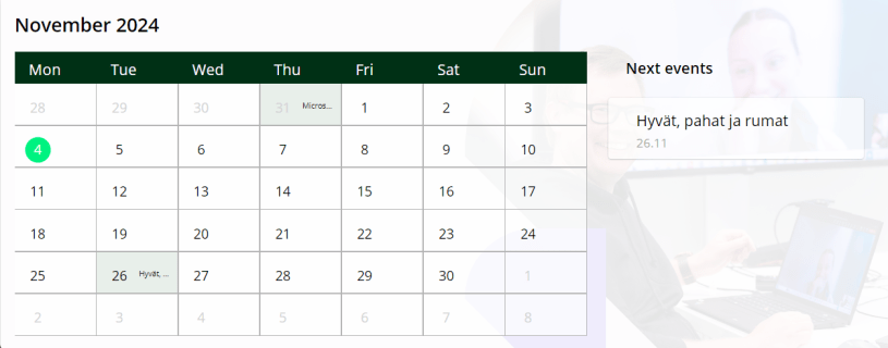 - Kuluvan kuukauden tapahtumat (jaettu outlook-kalenteri)