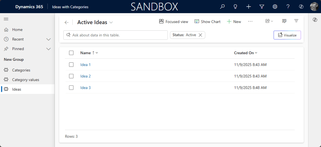 Luodaan ratkaisua varten Dataverseen 3 taulua.
