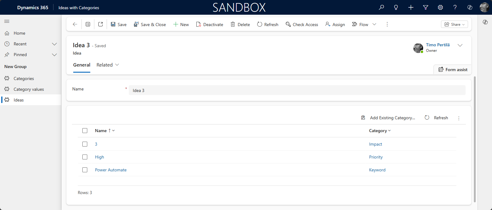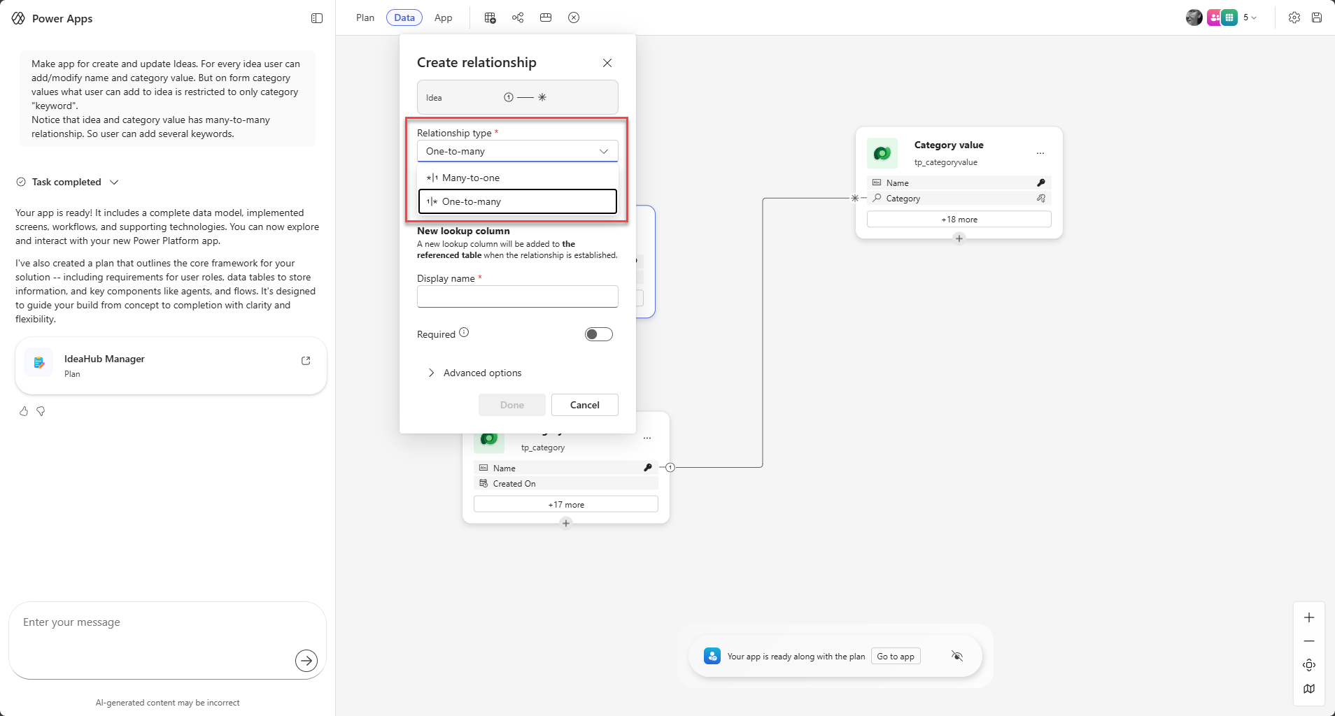 Model-driven Appsissa ideoihin voi lisätä luokitteluja näppärästi.