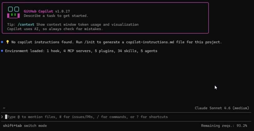 GitHub Copilot näyttää komentorivillä seuraavalta.