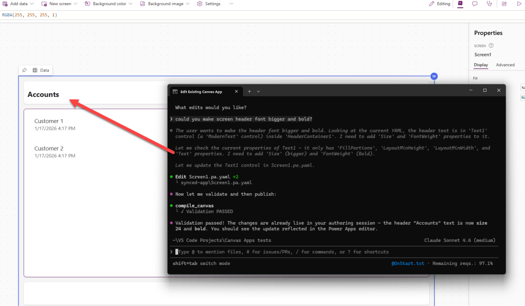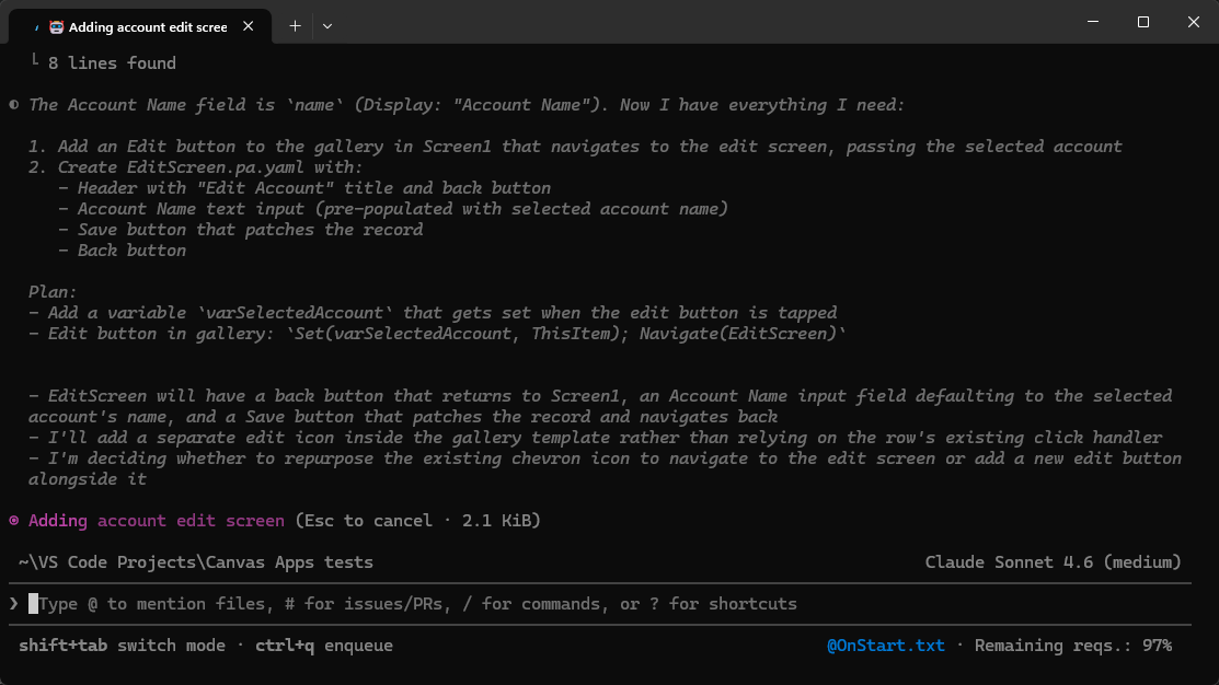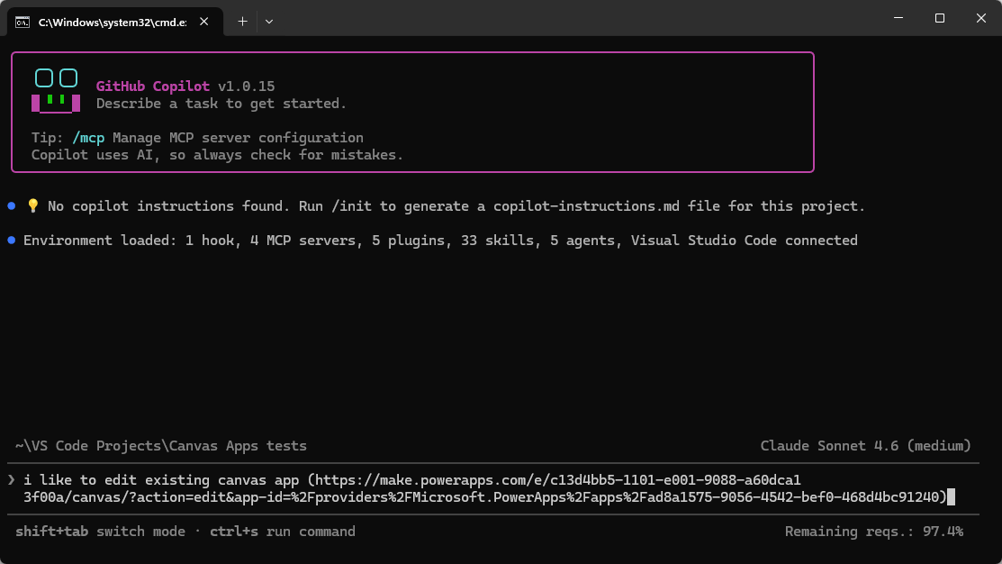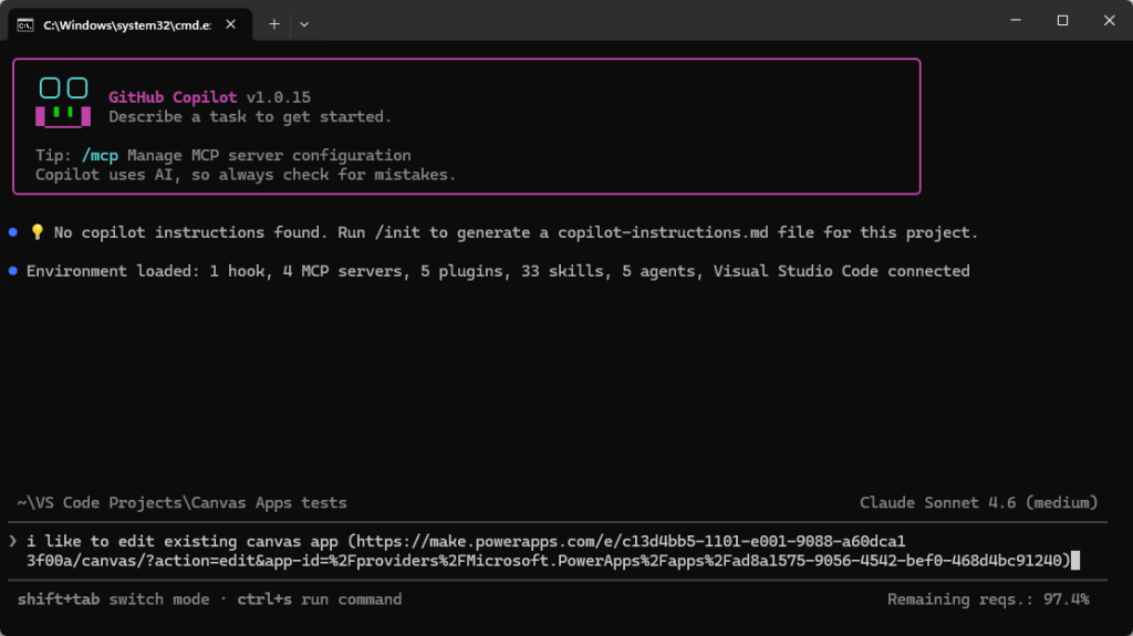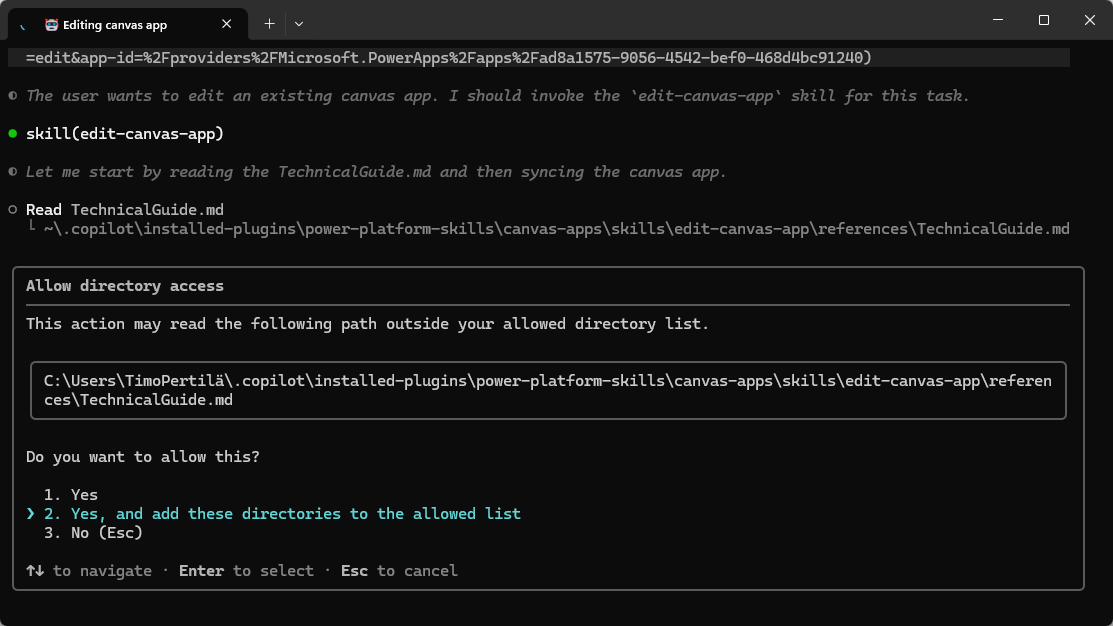 Canvas Appsien muokkaaminen perustuu Power Platform taitoihin (skills), joita käyttämällä GitHub Copilot (tai Claude Code) osaa toimia Power Platformin kanssa. Eli