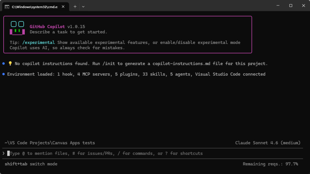 IT-alan tekeminen muuttuu vauhdilla AI-avusteiseksi tai jopa kokonaan (AI) agenttien tekemäksi. Sama kehitys on nähtävissä myös Power Platformissa. Aiemmissa jutuissa olen esitellyt erilaisia tapoja vibe-koodata Power Platformilla. Tällä kertaa tutustutaan jälleen yhteen uuteen tapaan, eli miten olemassa olevaa Canvas Power Appsia voi muokata GitHub Copilot CLI:n (komentorivikäyttöliittymä) avulla.